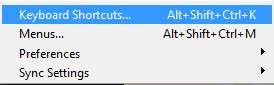 Click on the Edit dropdown menu and select Keyboard Shortcuts.